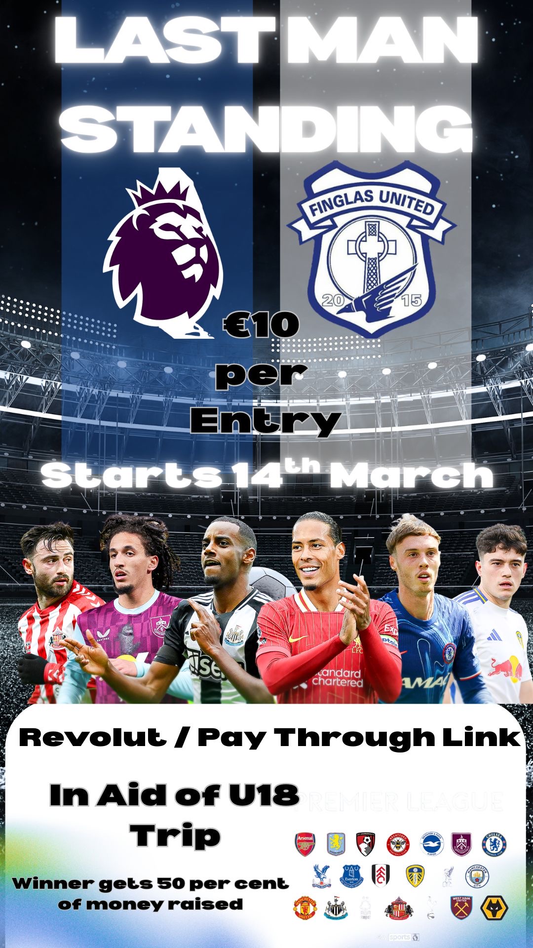 50% of entry money raised towards the U18s trip.